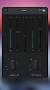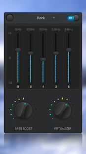 Equalizer is a volume slider with live music stereo led VU meter and five band Equalizer with Bass Boost and Virtualizer effects.