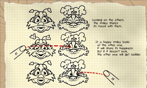 - You can also change the smiley's viewing direction. Just swipe it in the desired direction. If a happy smiley looks at the other one, it will share its happiness. But if it doesn't look, n the other one will get sadder.