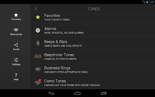 Each tone in our library has been carefully designed and professionally mastered to sound clear and pristine on your Android device. Browse through the different categories of ringtones, pick your favorites, and then assign them as your main ringtone or notification sound. You can also save them to your phone's memory to assign them with through your phone's settings.